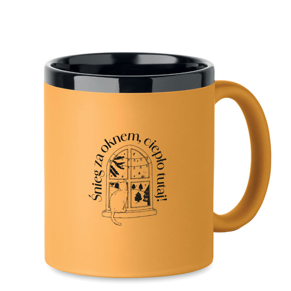Grawerowany kubek "Śnieg za oknem, ciepło tutaj"