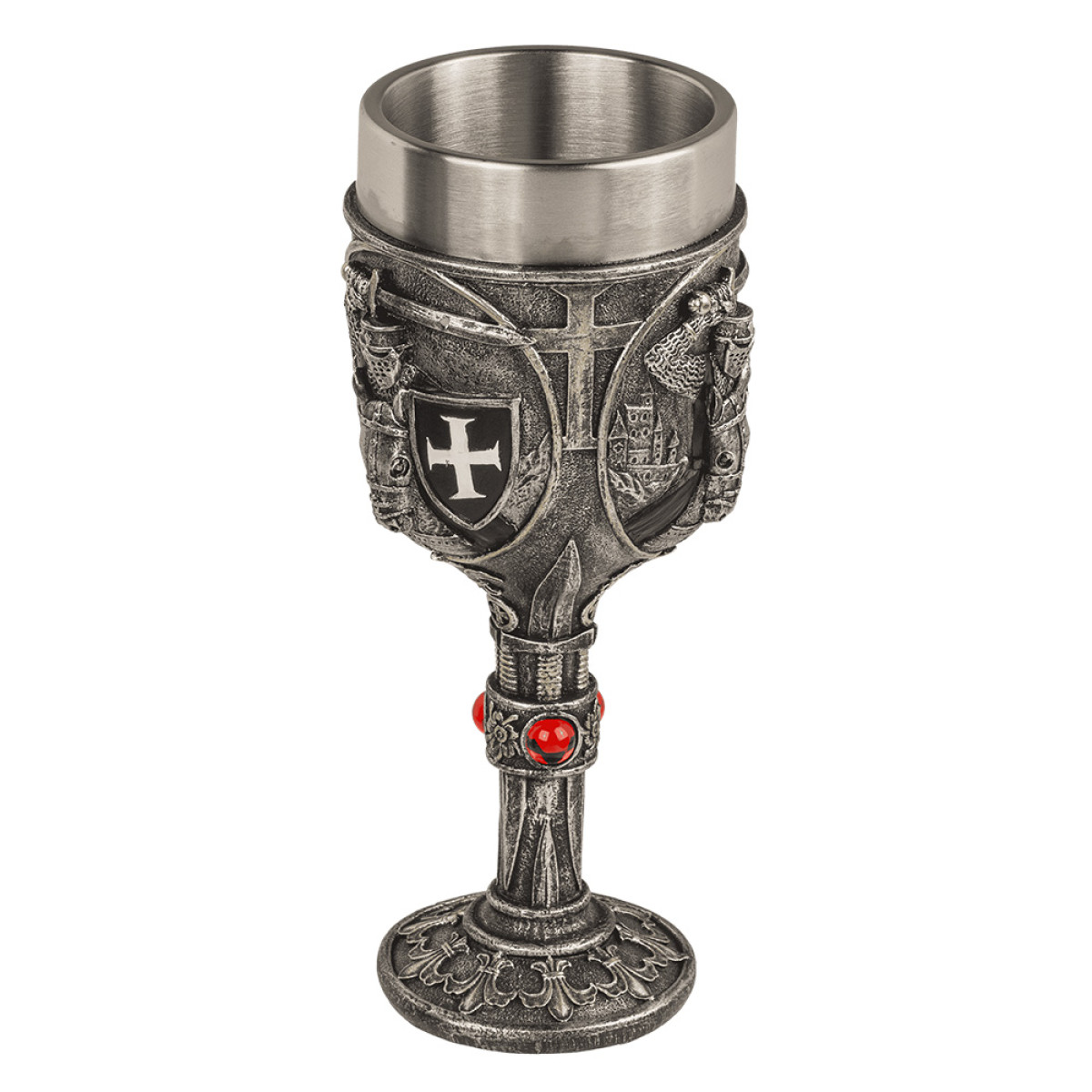 Wykonany z poliresiny z wnętrzem ze stali nierdzewnej, ten kielich charakteryzuje się misternie wykonanymi detalami inspirowanymi średniowieczną zbroją i duchem rycerskim.