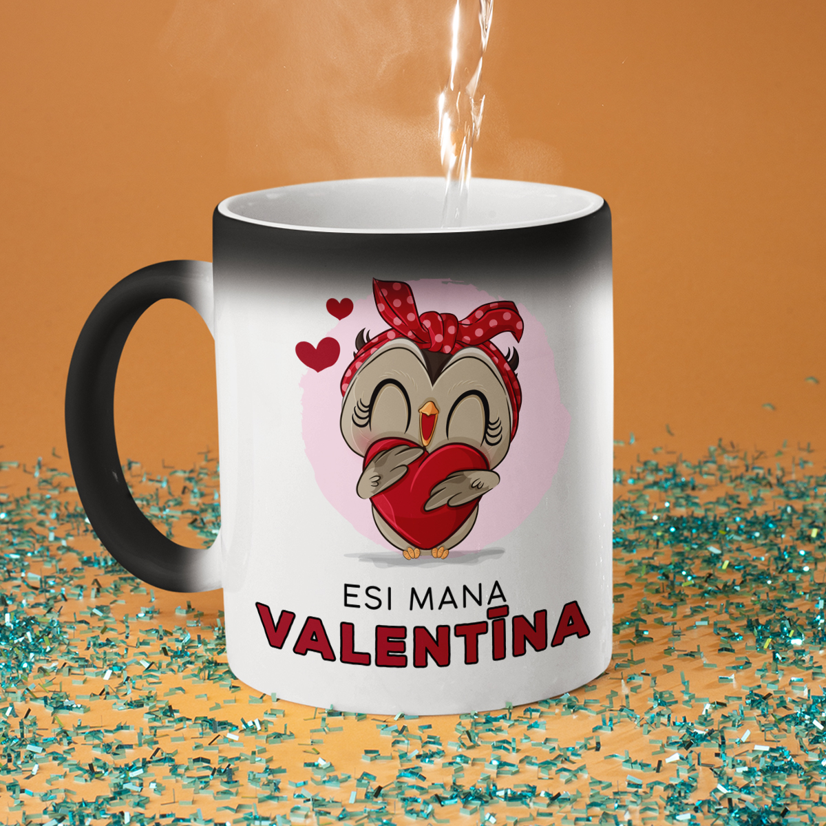 - Magiczny kubek – nie bez powodu nazywany jest magicznym! Na pierwszy rzut oka wygląda jak zwykły czarny kubek, ale po napełnieniu gorącą wodą zmienia kolor na biały i ujawnia ukryty nadruk. To prawdziwa niespodzianka oraz mały cud na każdy dzień!