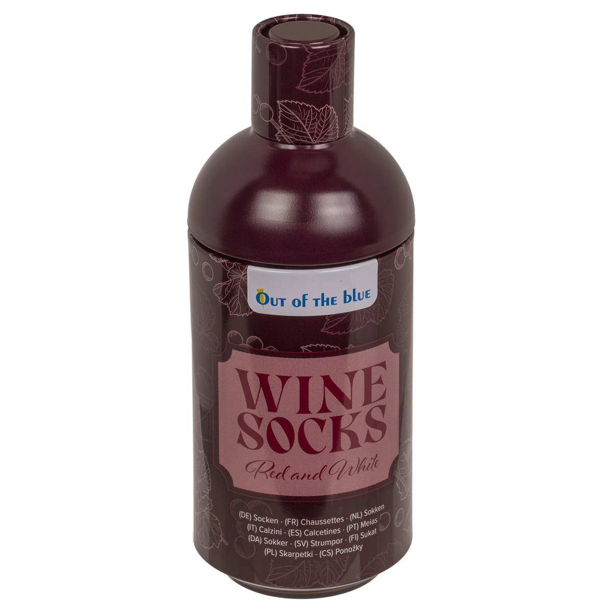 Te skarpetki wyróżniają się kolorystyką i opakowaniem - są dostarczane w metalicznym pudełku przypominającym butelkę wina!